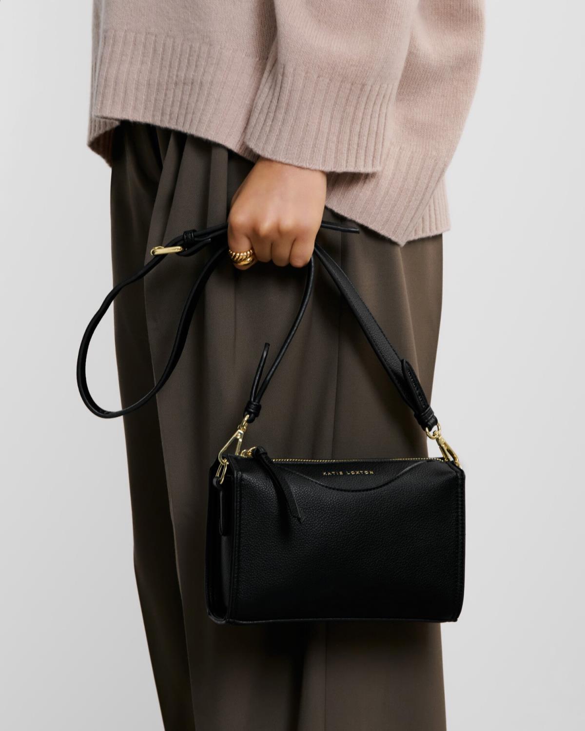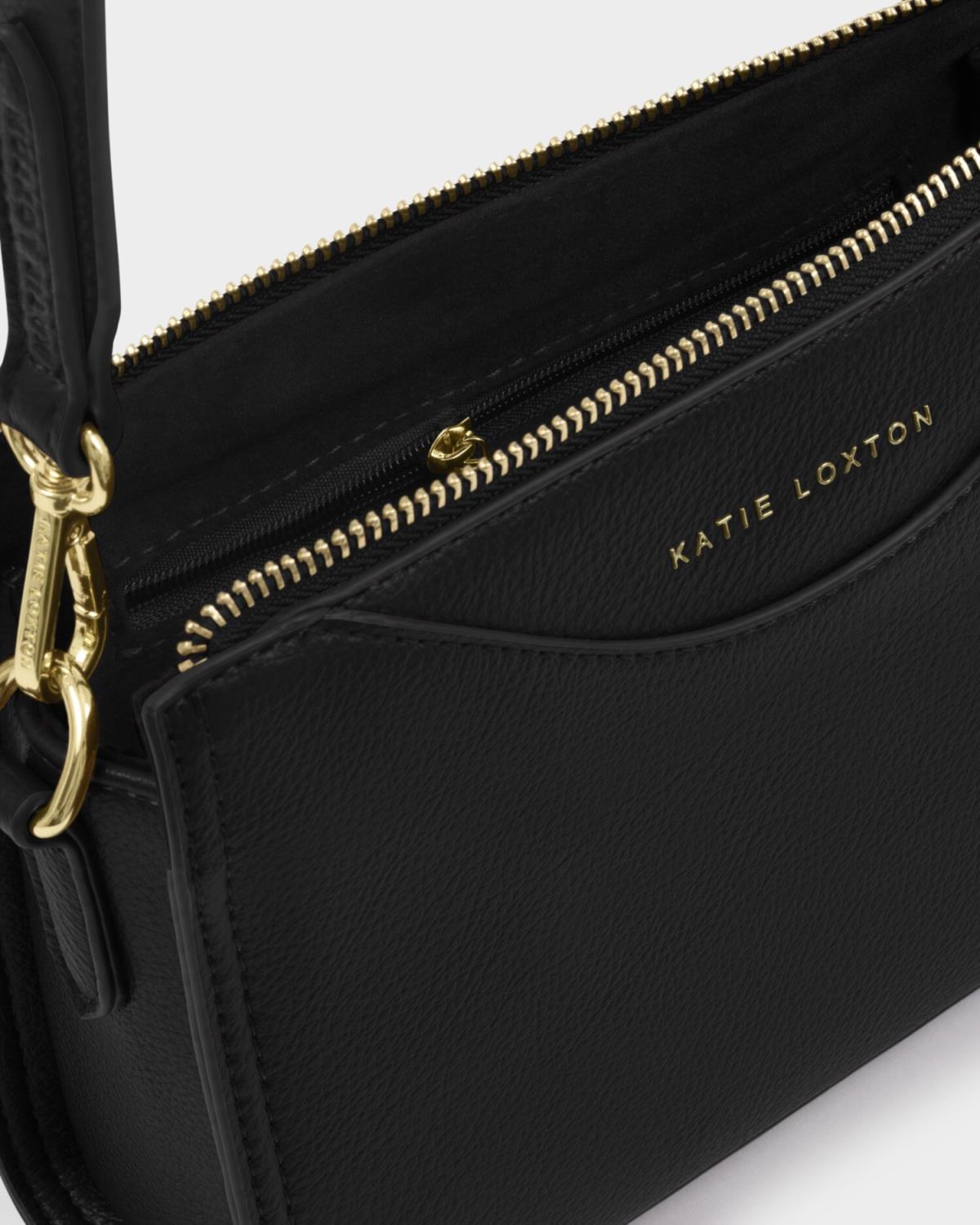 Alba Crossbody-veske i svart har en tidløs kameraveske-silhuett, noe som gjør den til en umiddelbar klassiker. Den har en sikker glidelåslukking på toppen, kontrasterende vokssømdetaljer og en D-ring på stroppen for klips-på-tilbehør. Denne crossbody-vesken er designet for hverdagsbruk og tilbyr håndfri bekvemmelighet uten at det går på bekostning av stilen.