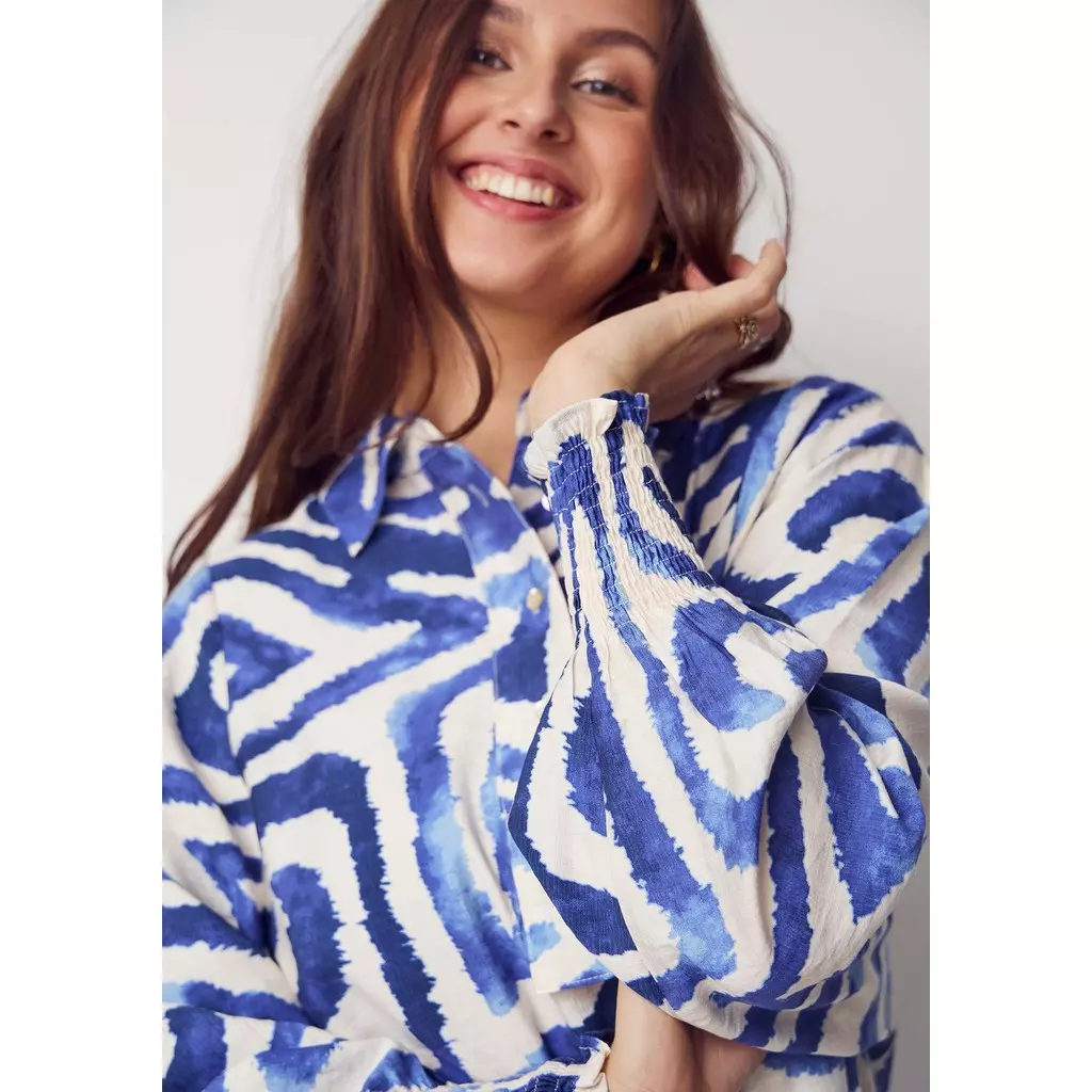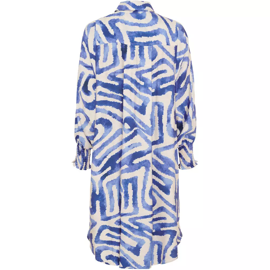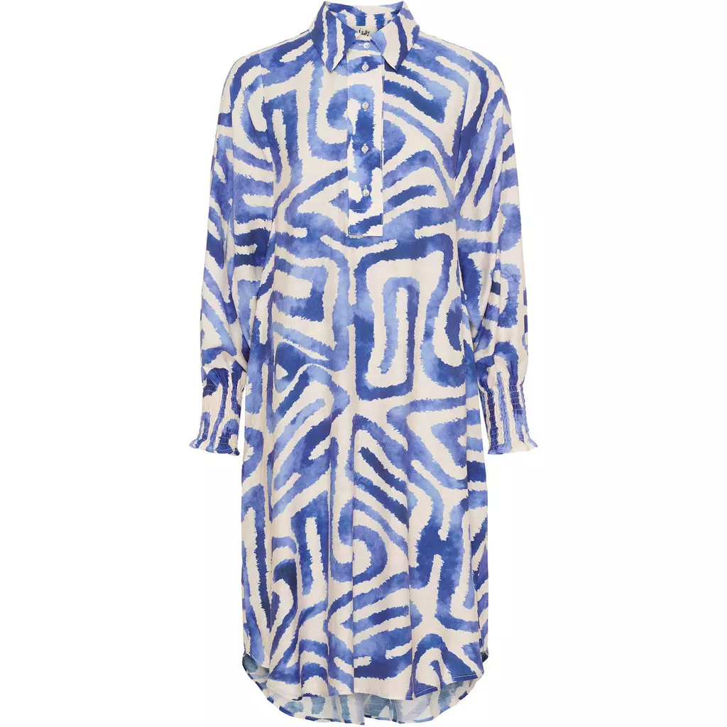Ane Printed Dress er en stilig kjole med et moderne trykk og et avslappet uttrykk. Den har en klassisk skjortekrage og knappestolpe, noe som gir kjolen et enkelt og tidløst utseende. Ermene er lange og avsluttet med vaffelsøm i mansjettene, noe som gir en komfortabel passform og et feminint preg. Den buede kanten gir et mykt fall som støtter kjolens avslappede passform. Laget av en myk viskoseblanding med polyamid, som føles behagelig mot huden og faller vakkert.