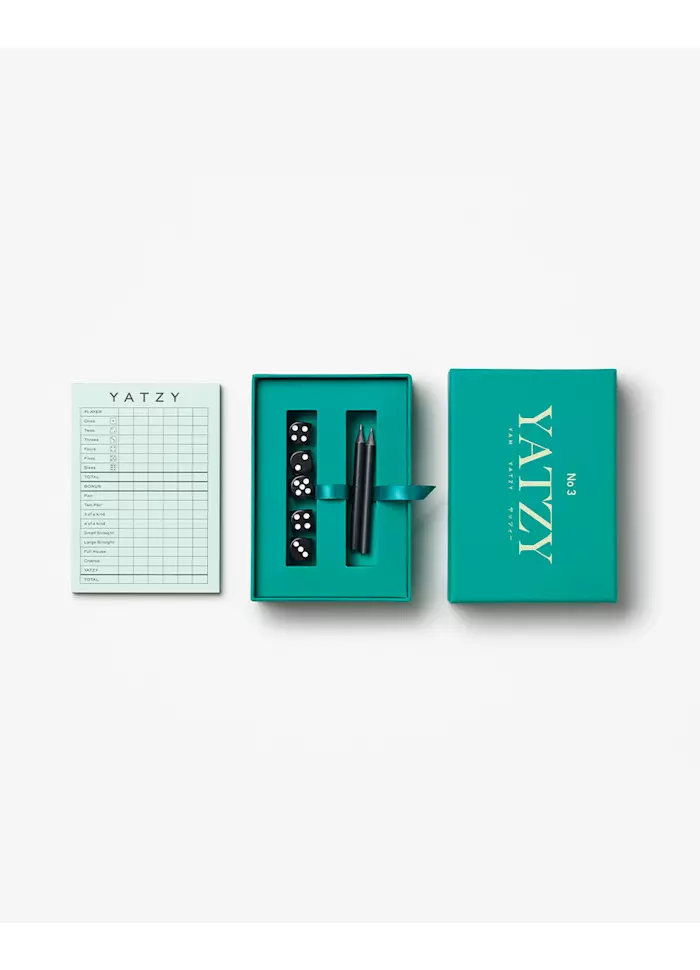 Oppdag en moderne vri på ditt elskede spill, Yatzy, hvor estetikk møter underholdning. Klassisk Yatzy inkluderer fem svarte terninger, to svarte blyanter og et 50-siders poengkort. Det har lettleste instruksjoner på engelsk, fransk og tyske, og passer for opptil 6 spillere fra 4 år og oppover.