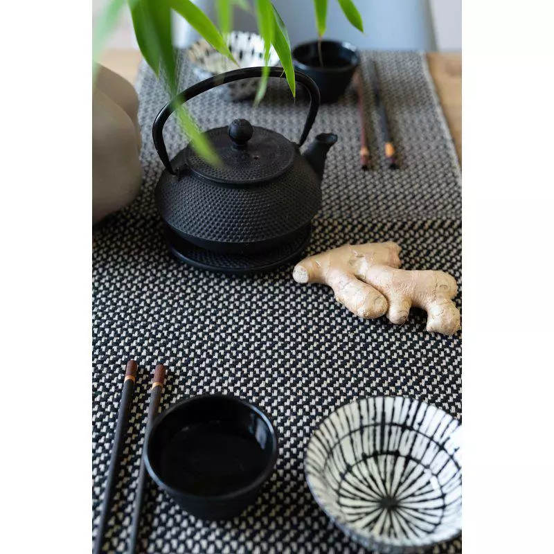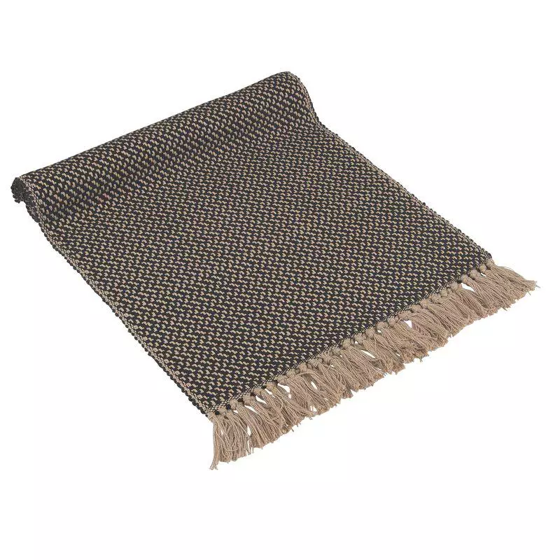 En stilren bordløper i 100% bomull med dekorative frynser. Fargene er myke og naturinspirerte, med en palett som minner om herlige nyanser inspirert av naturen.