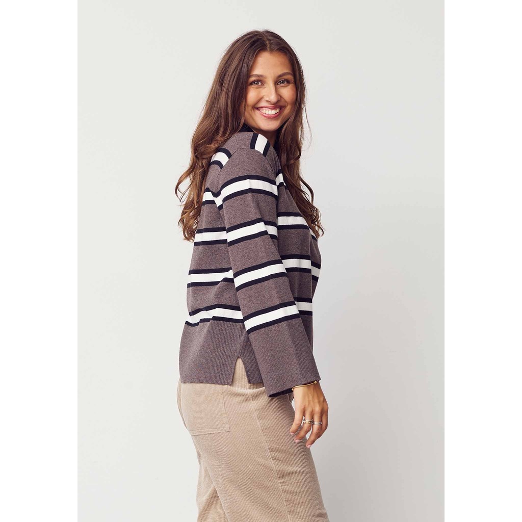 Den myke bomullsstrikken med et hint av elastan gir fleksibilitet og komfort, noe som gjør den ideell for både hverdagsbruk og mer pene antrekk. Style den med jeans for et avslappet utseende eller over en skjorte for en mer elegant stil.