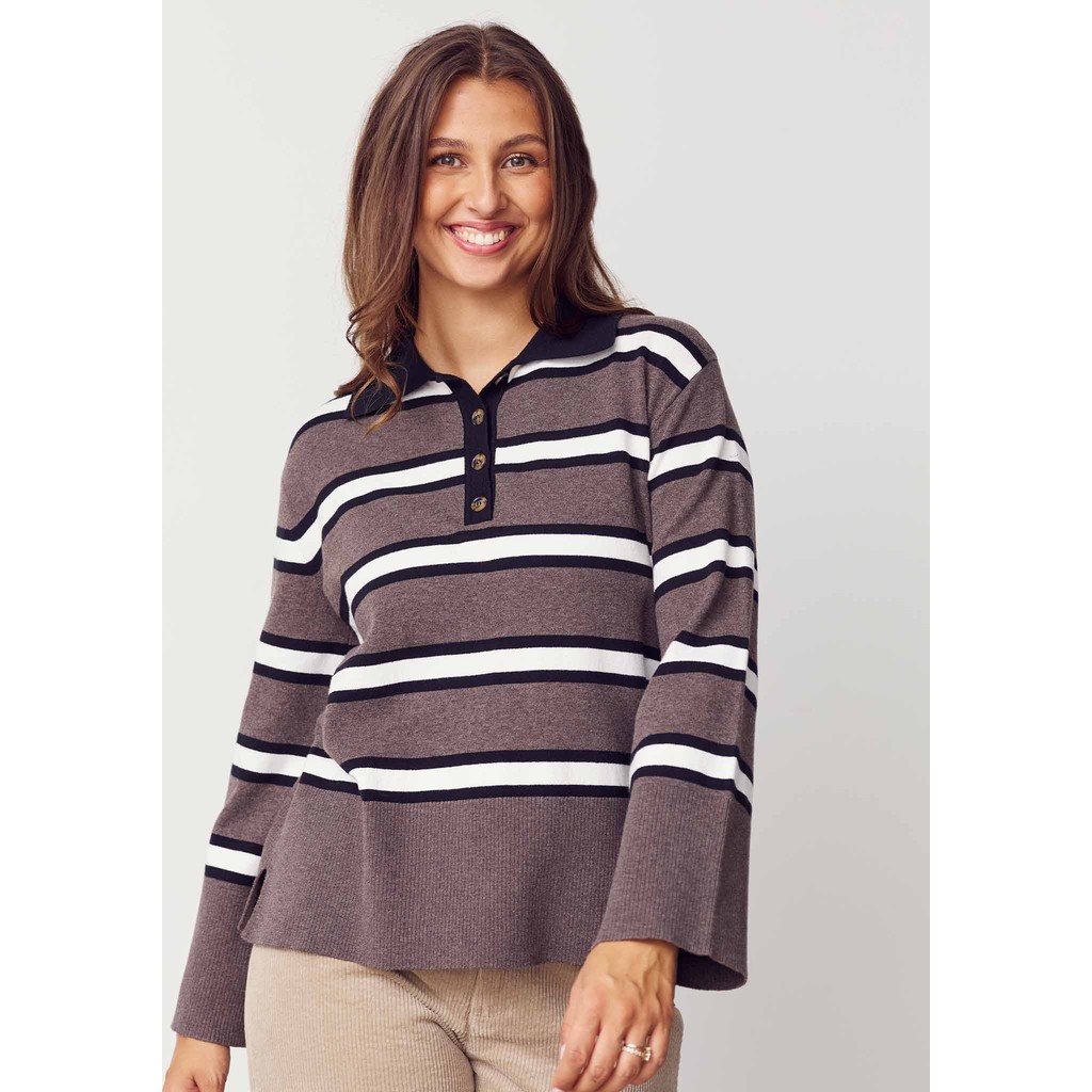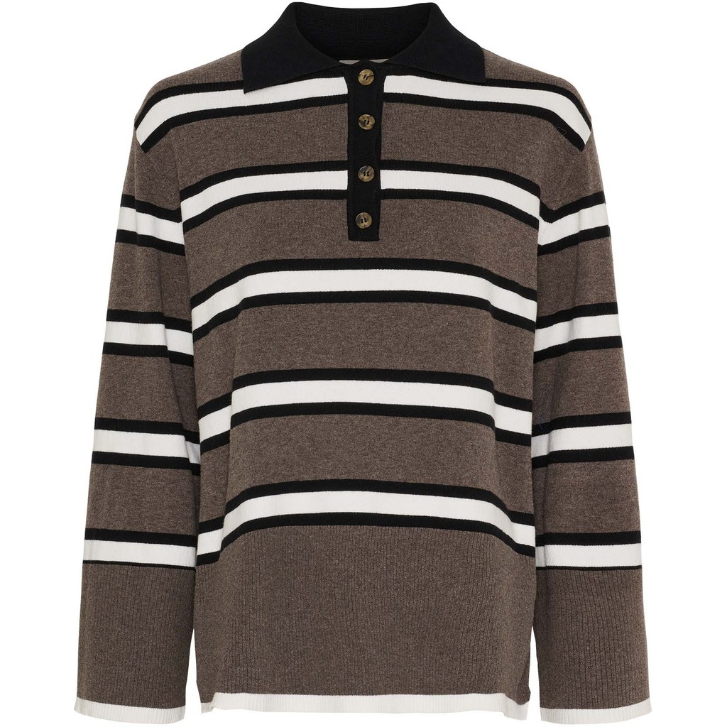 Frigga Polo-genseren kombinerer et sporty design med feminine detaljer. Den klassiske polokragen og knappelukkingen foran skaper et tidløst utseende, mens de løse lange ermene gir en avslappet og komfortabel passform.