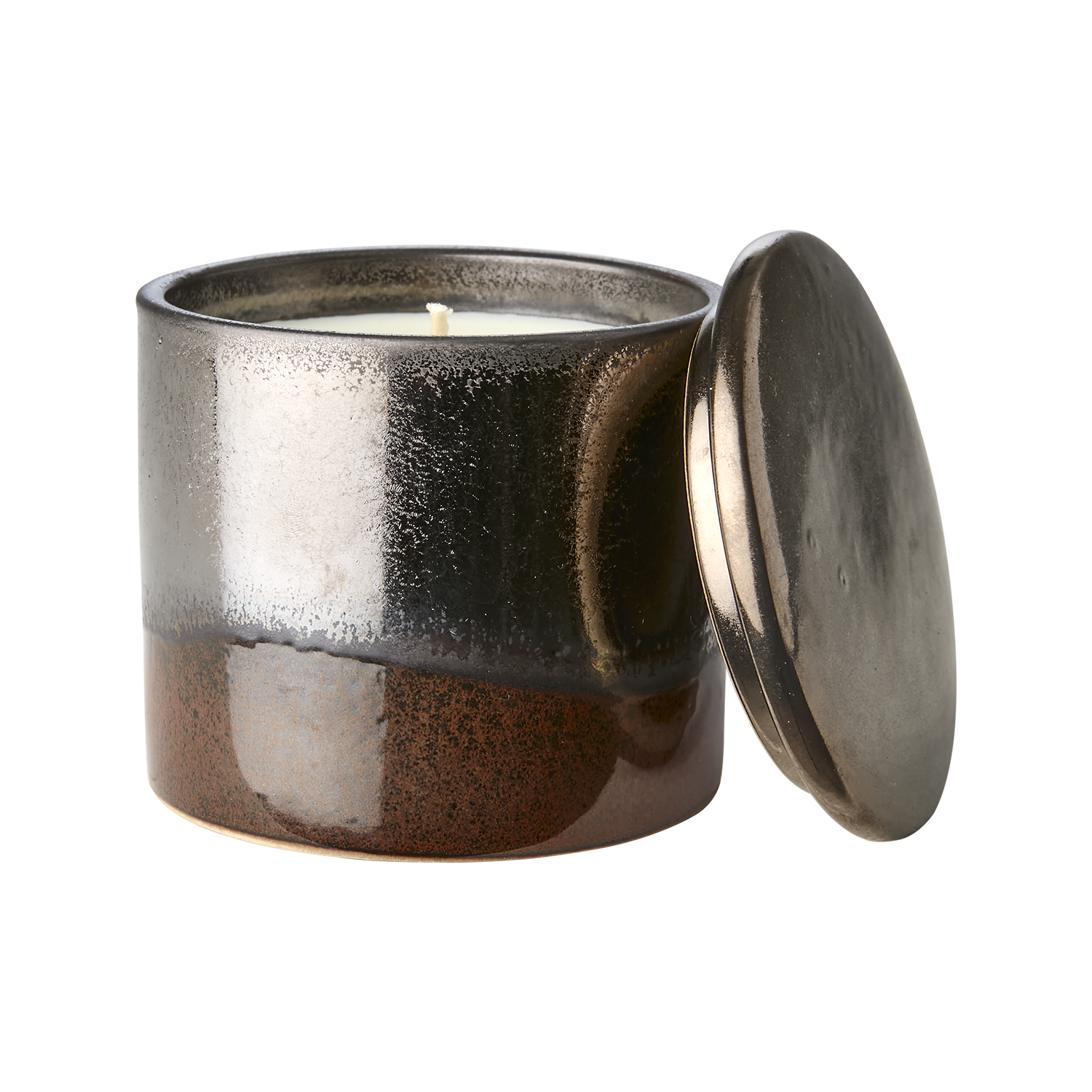 Duftlys i keramikkkrukke med lokk, duft av kanel.