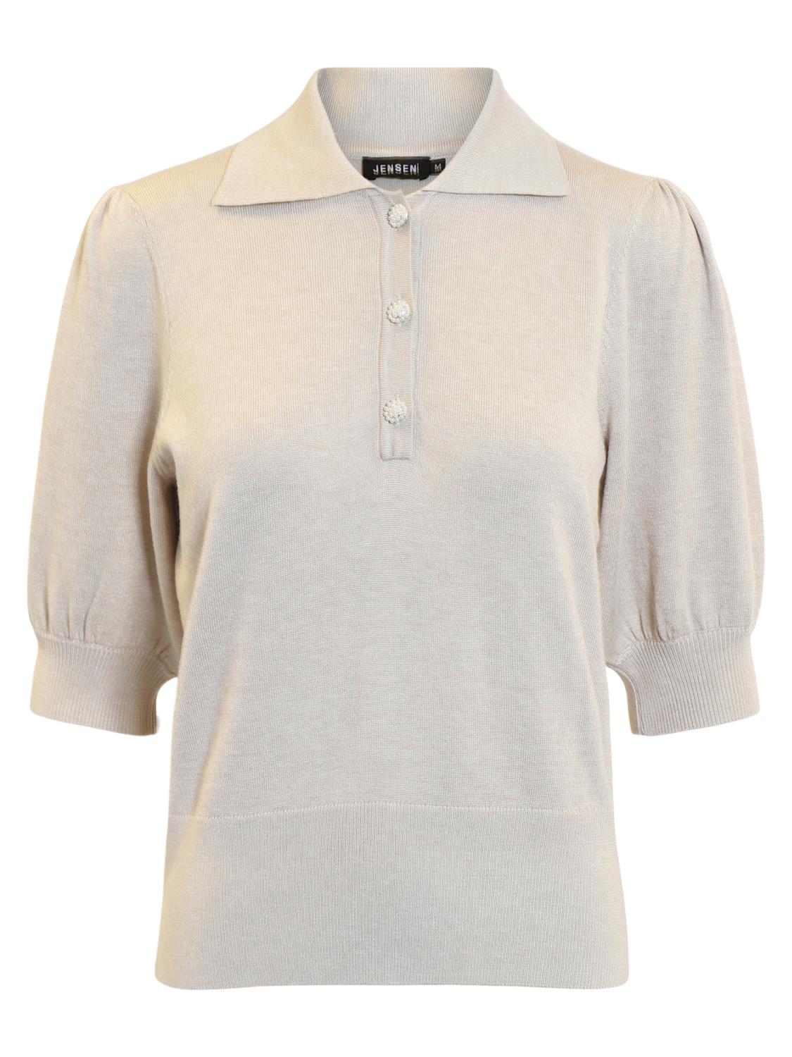 Kortermet t-skjorte med perleknapper , krage og liten puff på ermene.