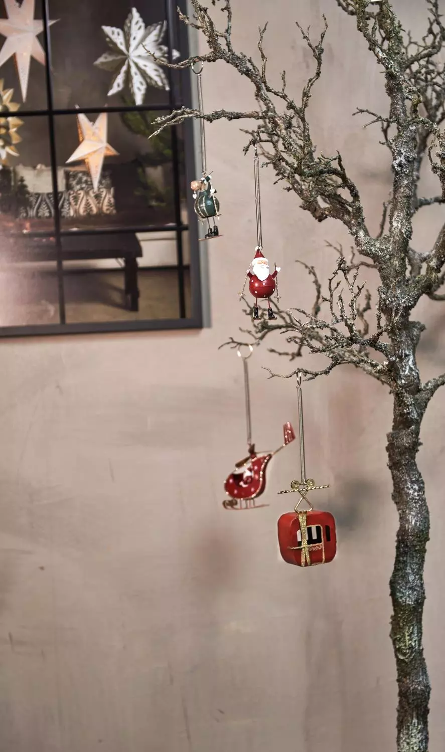 Metallnisse/elg med fjæroppheng. Søt å dekorere med. Kun til dekorasjon – ikke et leketøy.
