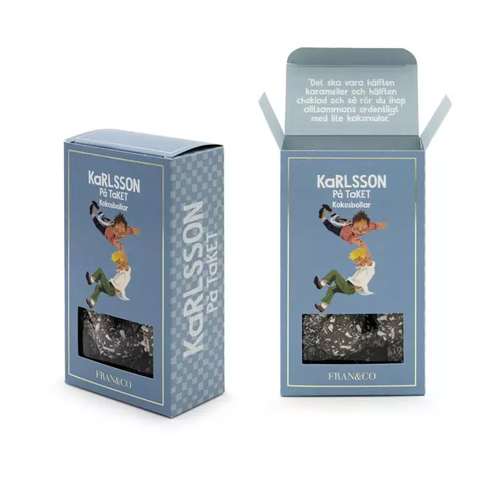 Ingredienser: Socker, vegetabiliskt fett (palm*, raps, palmkärna*, kokos), havregryn (gluten), kokos, vassle (mjölk), vatten, konserveringsmedel (E202), kakao, skummjölkspulver, emulgeringsmedel (solroslecitin, E471), salt, arom. Kan innehålla spår av hasselnötter.