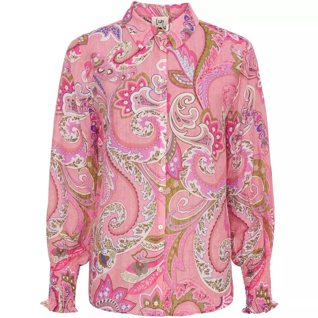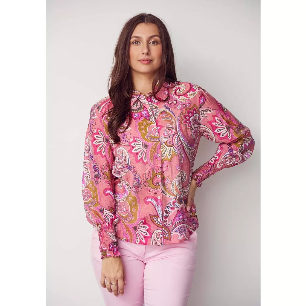 Lotta Smock Shirt er en feminin og luftig skjorte med et vakkert fall og en komfortabel silhuett. Den avslappede passformen er kombinert med klassiske detaljer som skjortekrage og heldekkende knapper, mens de lange ermene er avsluttet med elastisk smock og en liten rysjekant, noe som gir et feminint preg. Skjorten er laget av en lett, gjennomsiktig viskoseblanding med polyamid, som føles myk mot huden og faller vakkert rundt kroppen.