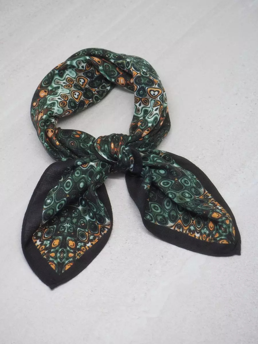 Dette deilige skjerfet i 100 % viskose kombinerer olivengrønn og mørkebrun – en varm og harmonisk palett som passer perfekt til årstiden. Stoffet er lett og mykt, og størrelsen på 68 x 68 cm gjør det enkelt å style på mange måter.