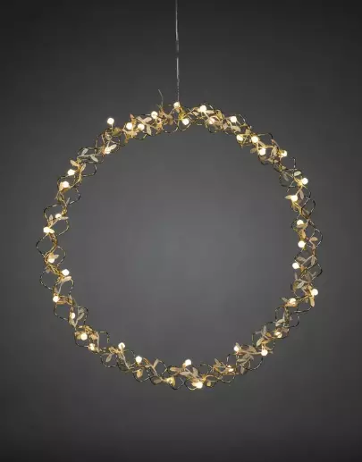 Article Description Wreath w.decoration brass metal, 45cm. 40 w.white LED, IP20