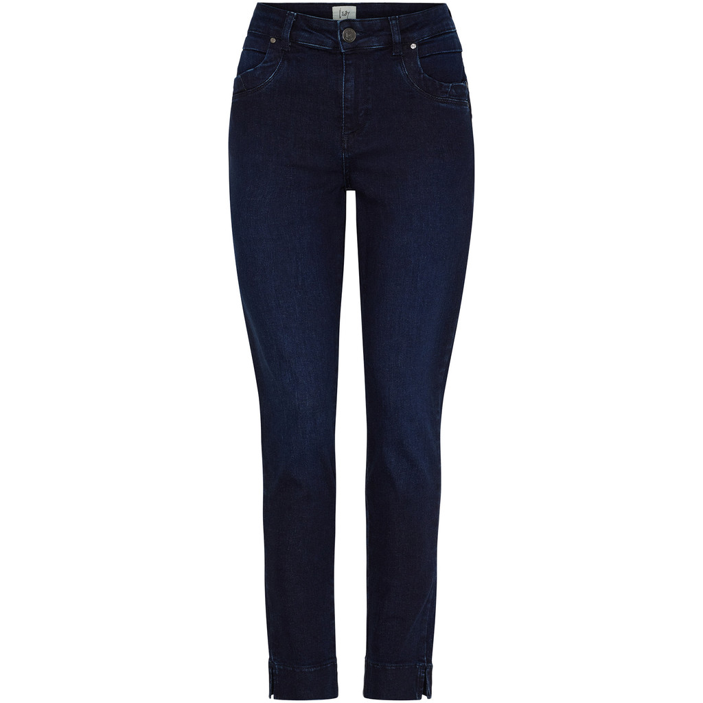 Våre Verona Jeans er et must-have i garderoben din! Disse jeansene tilbyr høy komfort og er laget av stretchy materiale som sikrer en utmerket passform. Den denimvasken på Verona jeansene er utrolig kul, og vi har lagt til et lite splitt nederst på buksebenet for en feminin touch. Buksene har en fast linning med lommer foran og bak og fine detaljer ved frontlommene. I tillegg har Verona jeansene en middels høy midje.